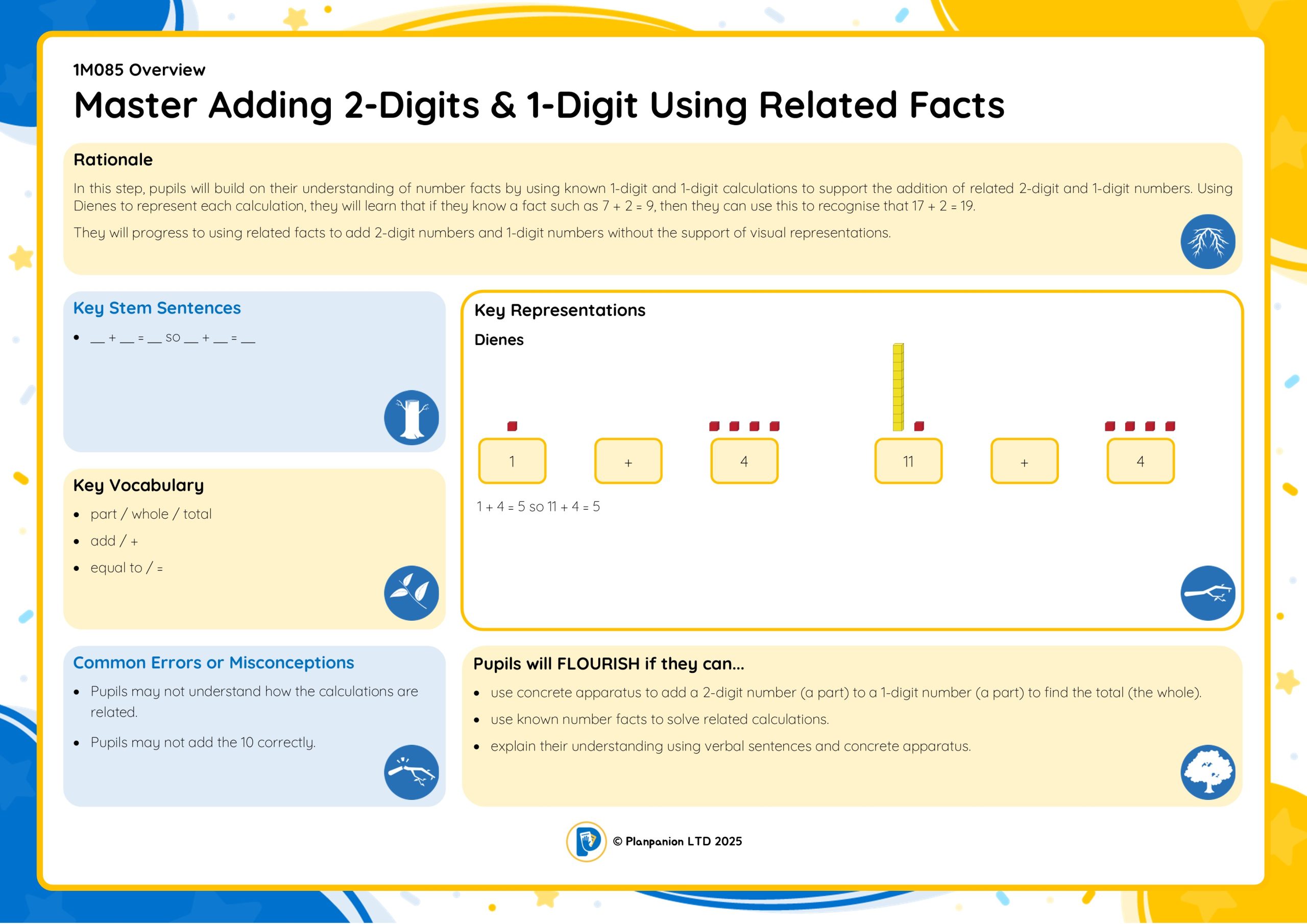 1M085 Master Adding 2-Digits and 1-Digit Using Related Facts