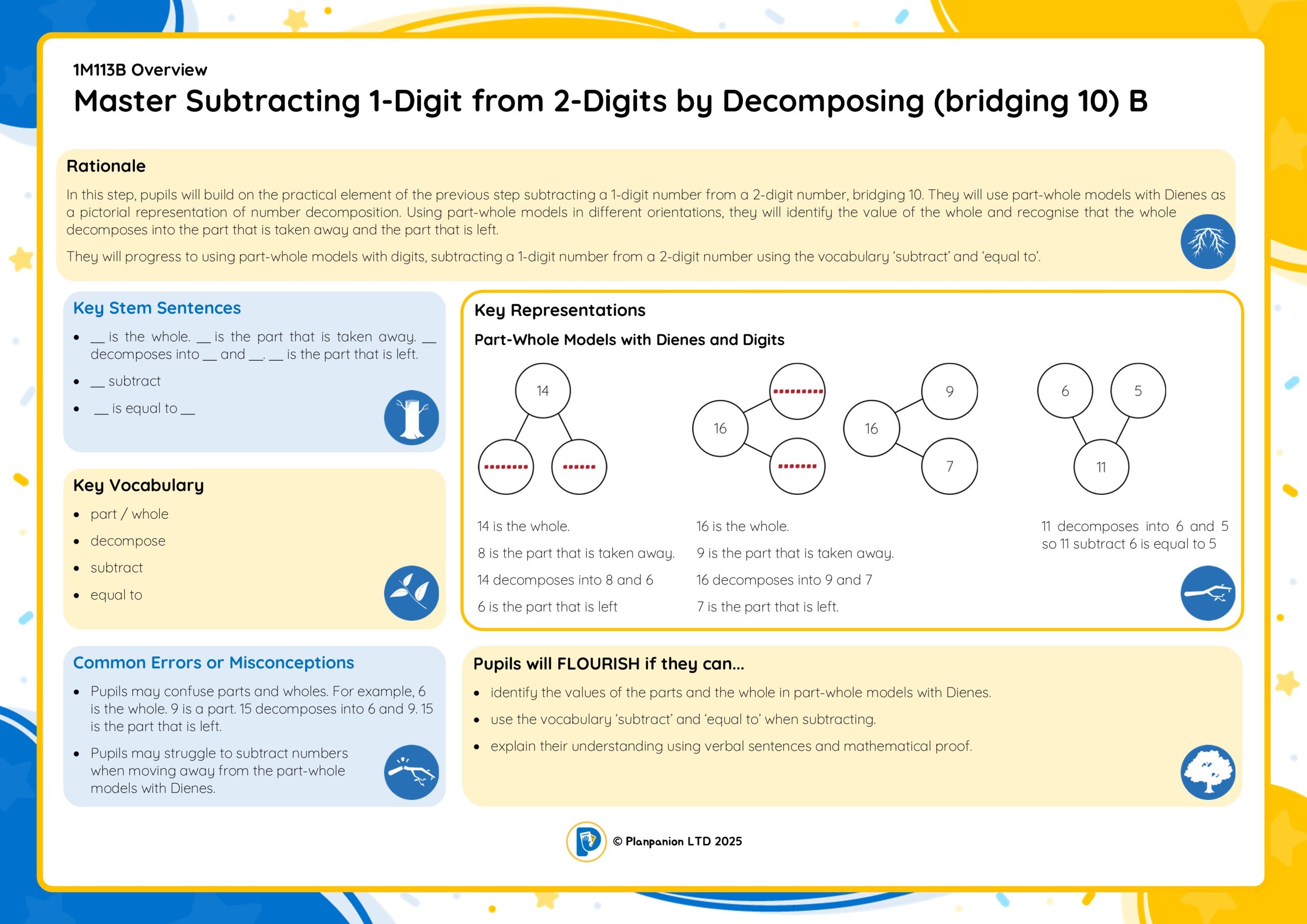 1M113B Master Subtracting 1-Digit from 2-Digits by Decomposing (bridging 10) B