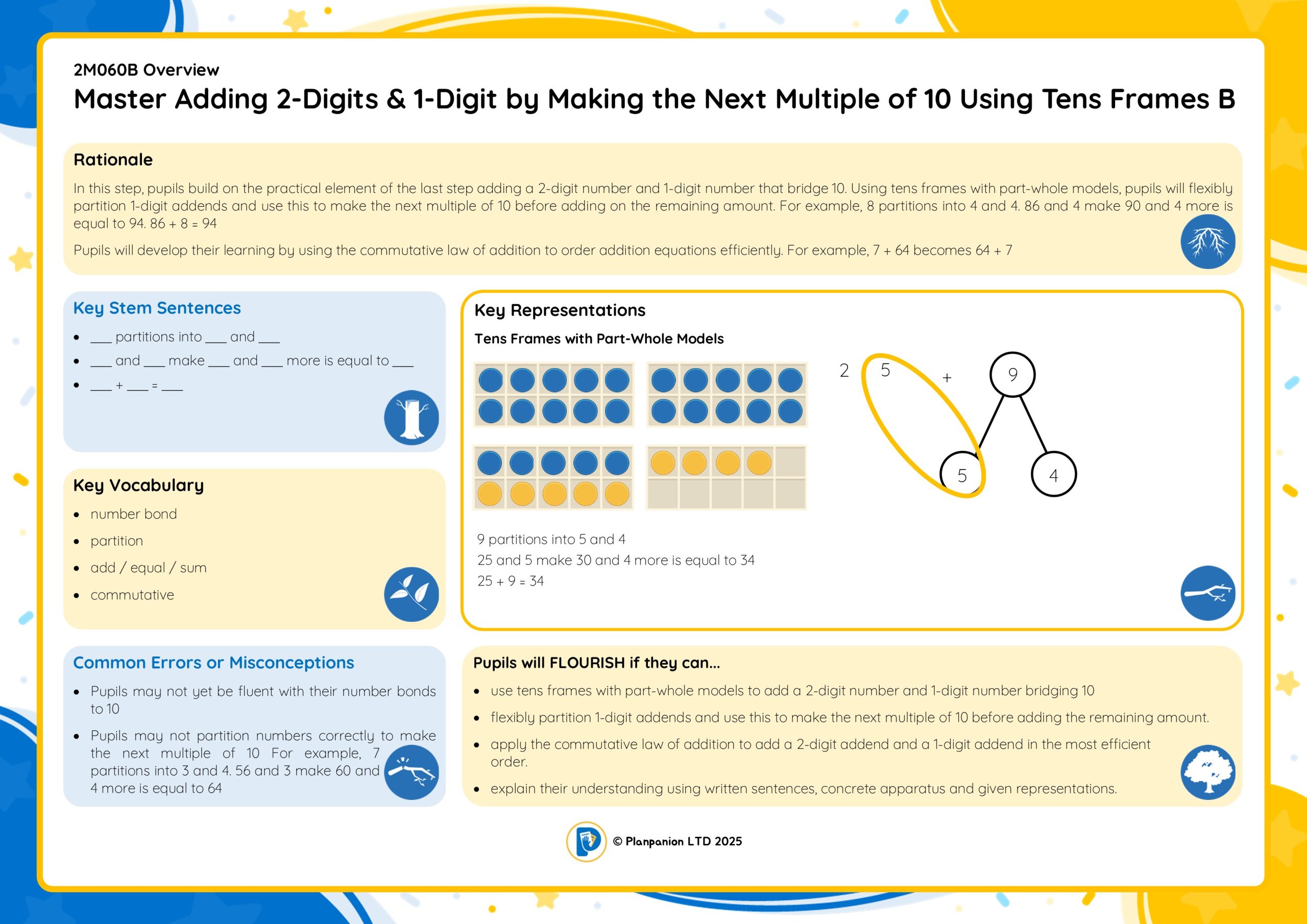 2M060B Master Adding 2-Digits and 1-Digit by Making the Next Multiple of 10 Using Tens Frames B