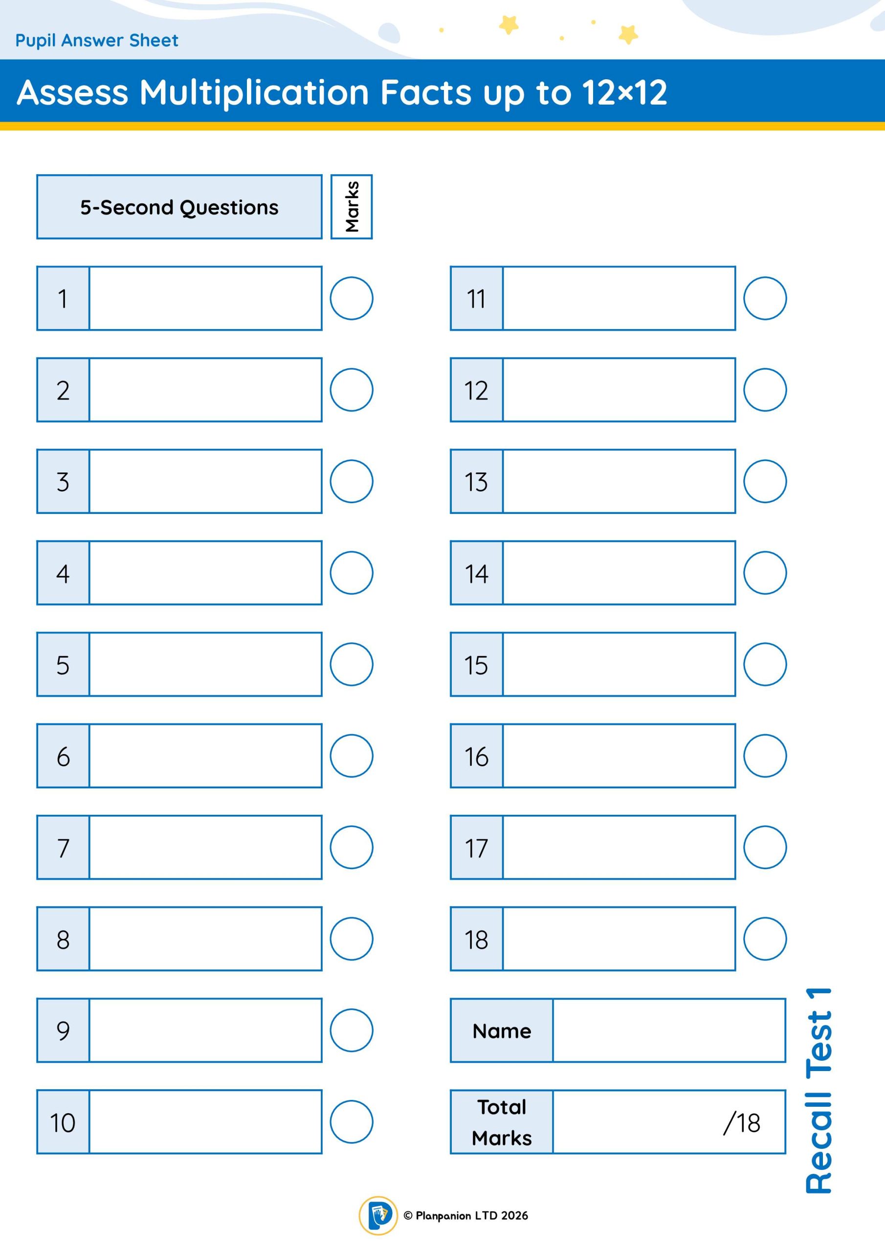 Assess Multiplication Facts up to 12×12