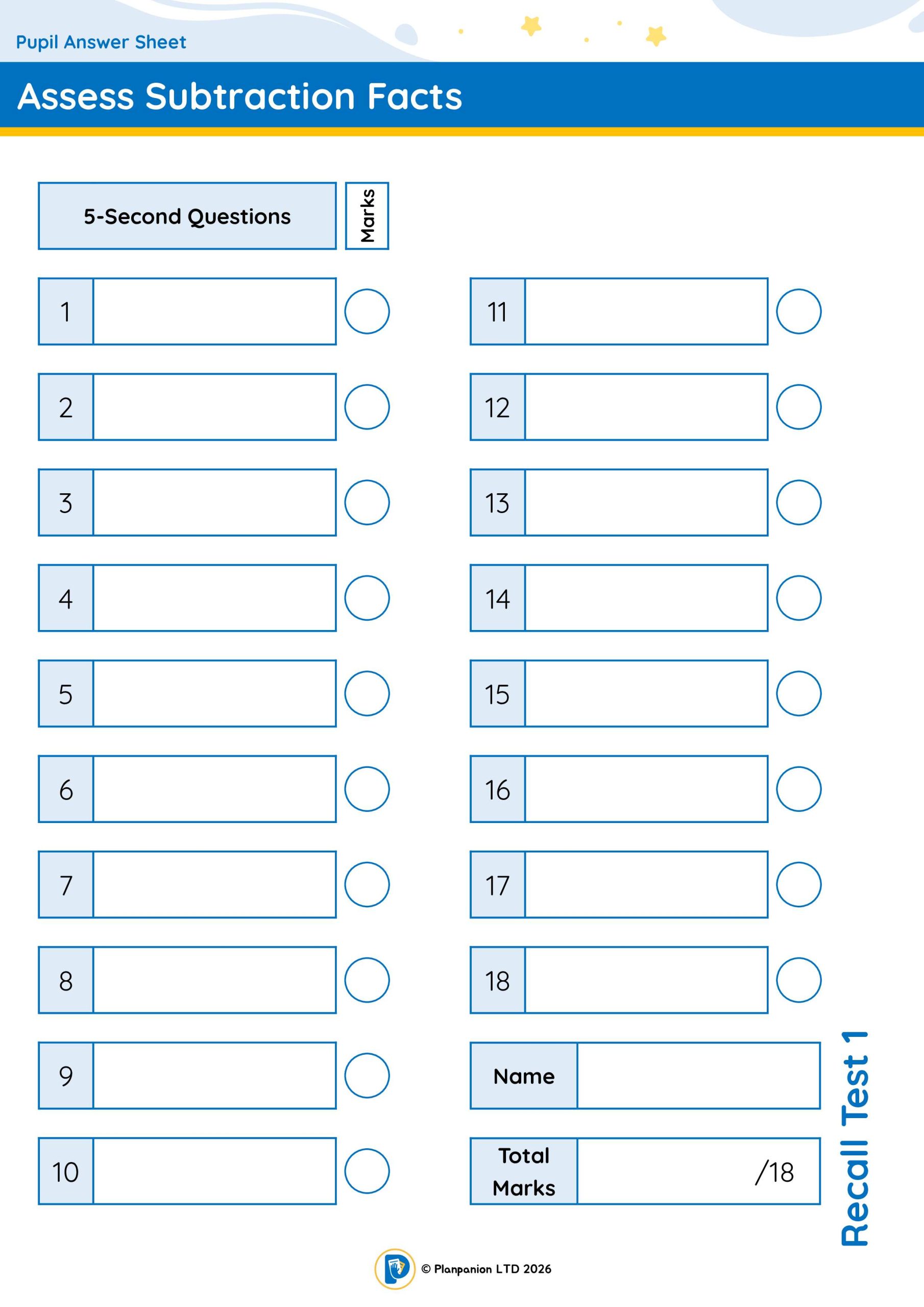 Assess Subtraction Facts